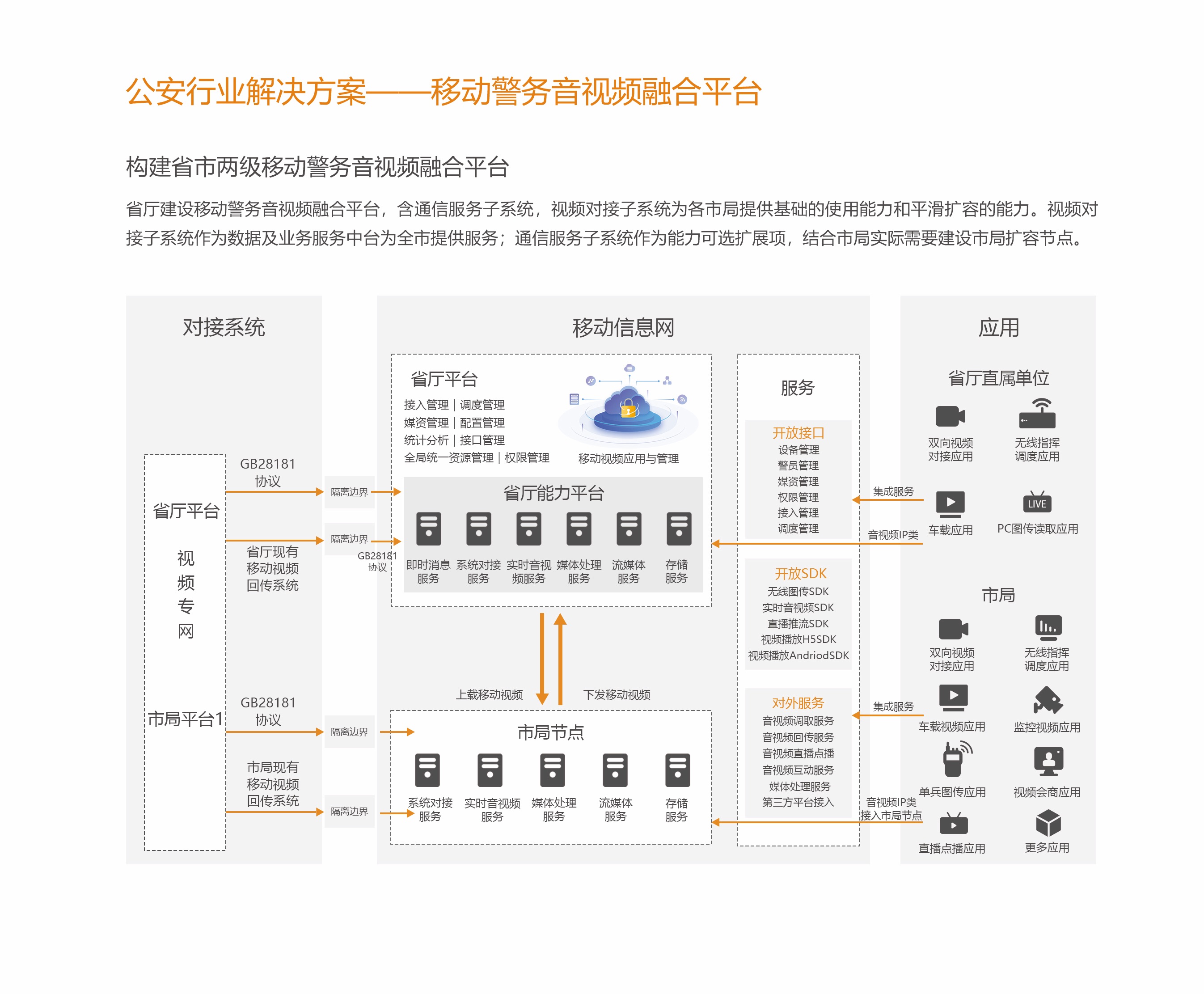 電信易通以公安部移動警務總體技術規范為依托,為公安行業提供了面向省廳、地市,多方面的移動警務解決方案。其中包括:新一代移動警務平臺建設、移動互聯網服務子平臺建設、移動警務音視頻融合平臺、行業雙系統定制終端等。